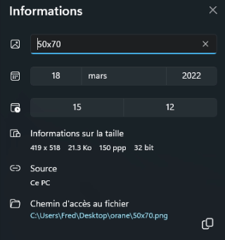 Marcel sourit et répondit : « Vous pouvez vérifier la résolution de vos images soit en ouvrant le fichier avec un logiciel de retouche d’image comme Photoshop ou alors avec l’application Photos de windows. Une fois l’image ouverte avec le Photos, faites un clic droit et cliquez sur « information sur le fichier« . La résolution de l’image est exprimé en ppp