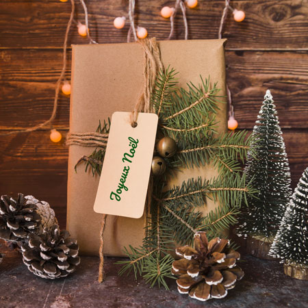 - Sur vos produits en magasin : Ajoutez une étiquette avec un message festif ou une offre spéciale.