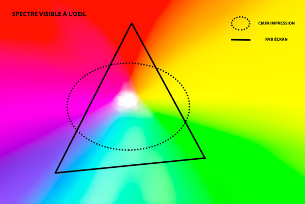 Cependant, elles ne sont pas idéales pour l’impression, car le blanc est obtenu par la combinaison des trois couleurs à pleine intensité. Ce qui n’est pas le cas en impression où le papier non imprimé est généralement blanc.