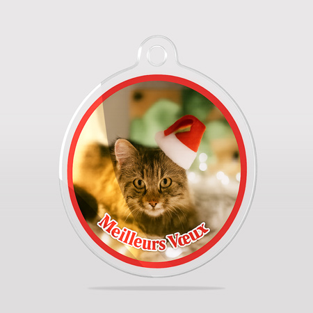 Chez Fac Imprimeur, nous vous proposons une boule de Noël photo imprimée en haute définition sur du plexiglass de 3 mm d’épaisseur, pour un rendu net, brillant et durable. Grâce à notre outil de personnalisation en ligne, vous pouvez facilement ajouter la photo de votre choix, ainsi qu’un prénom, une date ou un petit mot. Votre création est ensuite imprimée avec soin et livrée en quelques jours, prête à être accrochée dans le sapin ou offerte.