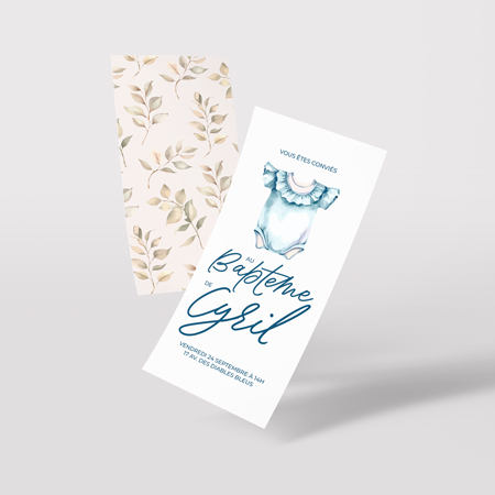 Le baptême est un moment intime et chargé d’émotion. Une carte d’invitation baptême doit refléter la tendresse et la douceur de cette journée spéciale. Nos options de papier texturé, nos coloris pastel et nos motifs délicats sont parfaits pour créer une invitation raffinée et touchante.