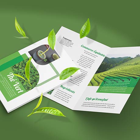 Les dépliants sont édités dans notre atelier à Nice, au format A3 (29,7 x 42 cm) avec une pliure centrale. Les impressions de vos dépliants professionnels sont éditées en couleur et en haute-définition. De plus, nous proposons plusieurs grammages pour votre support. En effet, ils vont du 90 gr laser au 350 gr couché brillant/Mat. Enfin, si vous avez choisi un support de 200 gr ou plus, vous avez l’option de pelliculer votre support publicitaire.