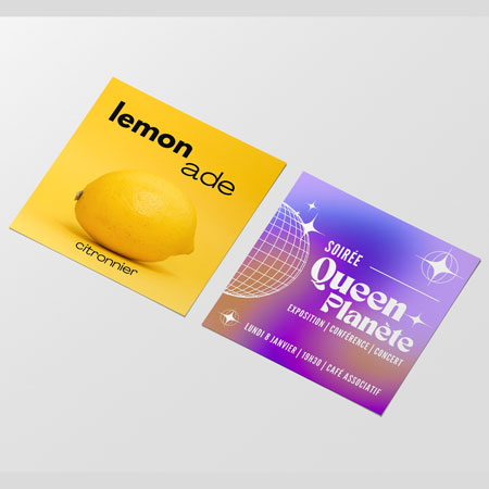 Chez Fac Imprimeur, nous comprenons à quel point il est essentiel de personnaliser vos flyers express pour qu’ils reflètent parfaitement votre entreprise. C’est pourquoi nous imprimons vos prospectus carrés dans notre imprimerie à Nice, en mettant l’accent sur la qualité supérieure. Vous pouvez choisir entre un papier de 300 g ou 350 g, selon vos préférences, et même opter pour un laminage mat ou brillant pour un aspect encore plus sophistiqué. Laissez-nous vous dire que tenir un flyer carré personnalisé entre les mains, c’est comme tenir une œuvre d’art.