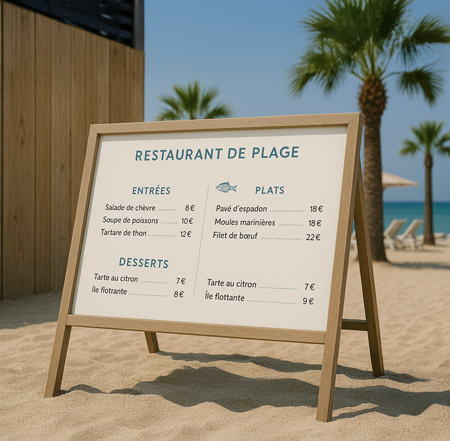 Oui, nos impressions pour porte-menus sont pensées pour être interchangeables facilement. Il vous suffit d’insérer un nouveau visuel dans le support existant (cadre, chevalet, pochette, etc.). Cela vous permet de mettre à jour votre carte ou vos offres à moindre coût, sans changer le support complet.