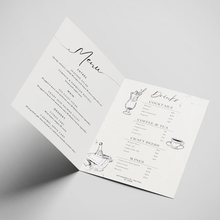 L’impression menu A5 est une option idéale pour les restaurateurs souhaitant offrir à leurs clients des menus élégants et pratiques. Ce format compact est non seulement facile à manipuler, mais il permet également de présenter les plats de manière claire et organisée. Le menu A5 trouve parfaitement sa place sur la table sans encombrer l’espace, offrant une expérience de lecture confortable pour les clients. En outre, sa taille réduite n’entrave en rien la créativité du design, permettant de jouer avec les couleurs, les polices et les images pour refléter l’identité visuelle de votre établissement. Avec l’impression menu A5, vous pouvez facilement mettre à jour vos offres saisonnières ou promotions spéciales, grâce à des options d’impression flexibles qui répondent aux besoins de chaque restaurant.
