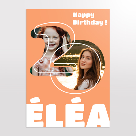 Ce modèle est pensé pour être à la fois moderne, tendre et visuellement fort. Il s’adapte parfaitement à une fête de 20 ans : soirée élégante, anniversaire entre amis ou célébration en famille. Grâce à sa mise en page équilibrée et à ses couleurs chaleureuses, il devient un élément décoratif incontournable pour un photobooth, la table du gâteau ou une déco murale.
