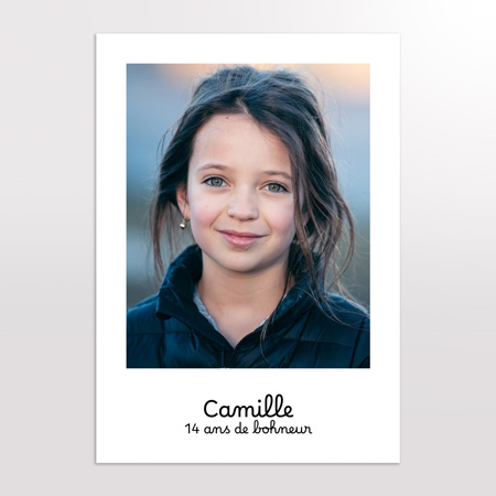 Ce design se prête parfaitement aux anniversaires, mais aussi aux souvenirs du quotidien ou aux portraits marquants. Grâce à sa sobriété, il convient à tous les styles et met en valeur chaque expression, chaque détail de l’image. Une fois imprimée, l’affiche trouve facilement sa place dans une décoration moderne, une chambre d’enfant ou un espace de fête.