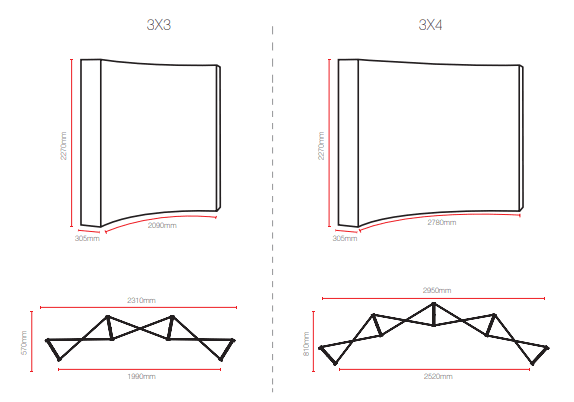 3×3 droit: 2270 (h) x 2310 (l) x 570 (p)