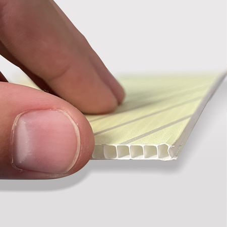 Le panneau alvéolaire est fabriqué à partir de polypropylène extrudé, un matériau plastique léger constitué de canaux internes « alvéoles » qui lui confèrent à la fois solidité et flexibilité. Disponible en plusieurs épaisseurs (3,5 mm, 5 mm, 8 mm ou 10 mm), le panneau alvéolaire s’adapte à de nombreux besoins. Il convient aussi bien à une utilisation en intérieur qu’en extérieur, pour des durées temporaires allant de quelques semaines à plusieurs mois.