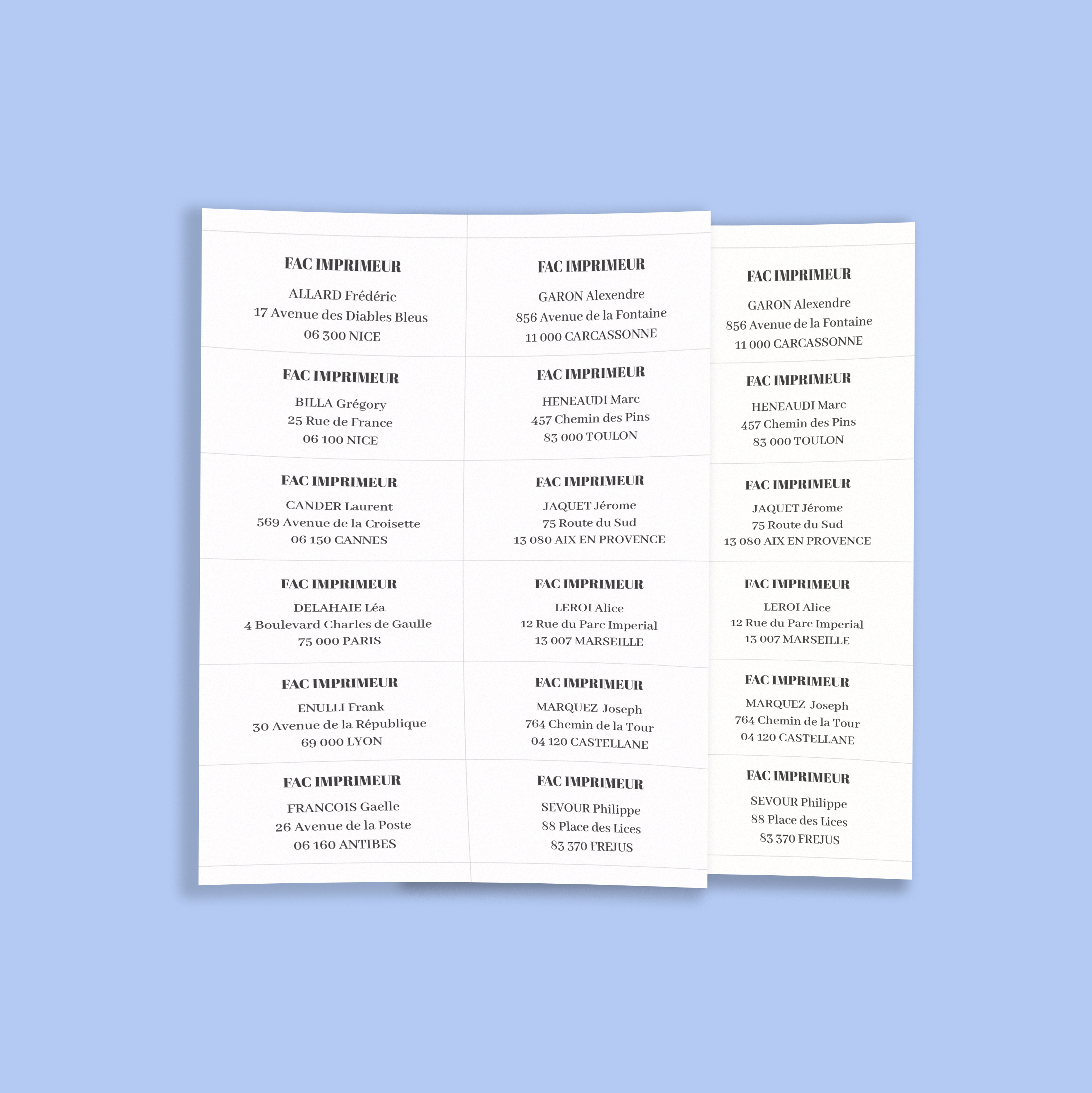 Vous pouvez nous confier votre base de données en toute sérénité. Nous en vérifions la structure, corrigeons les éventuelles erreurs et assurons un suivi rigoureux à chaque étape de l’impression étiquette publipostage.